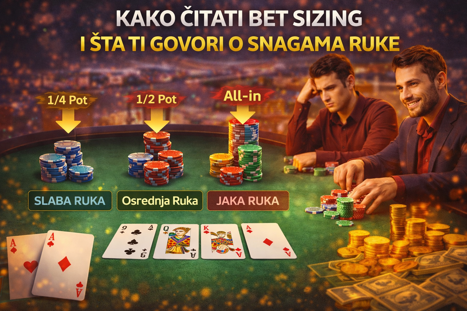 | Veliki (80%+) | jaka ruka ili blef |